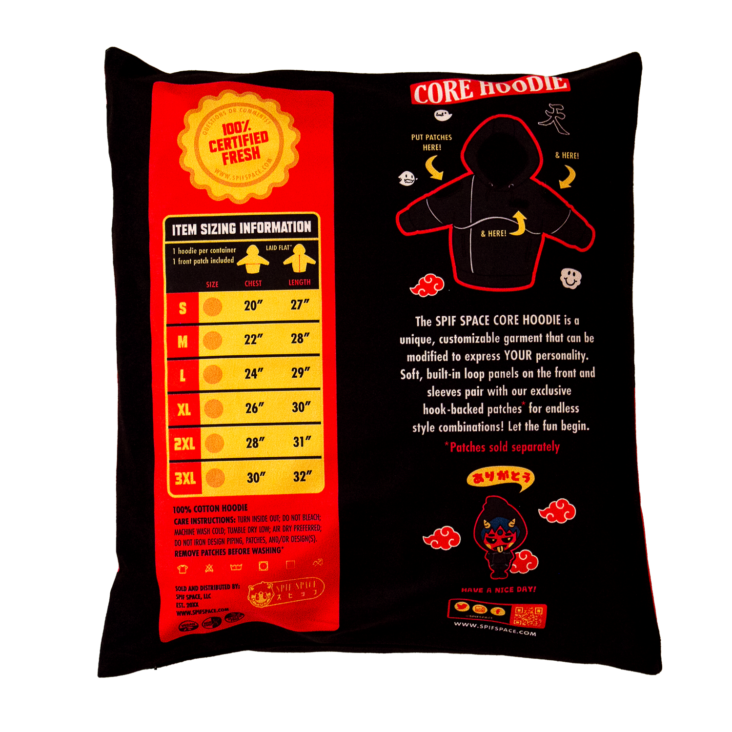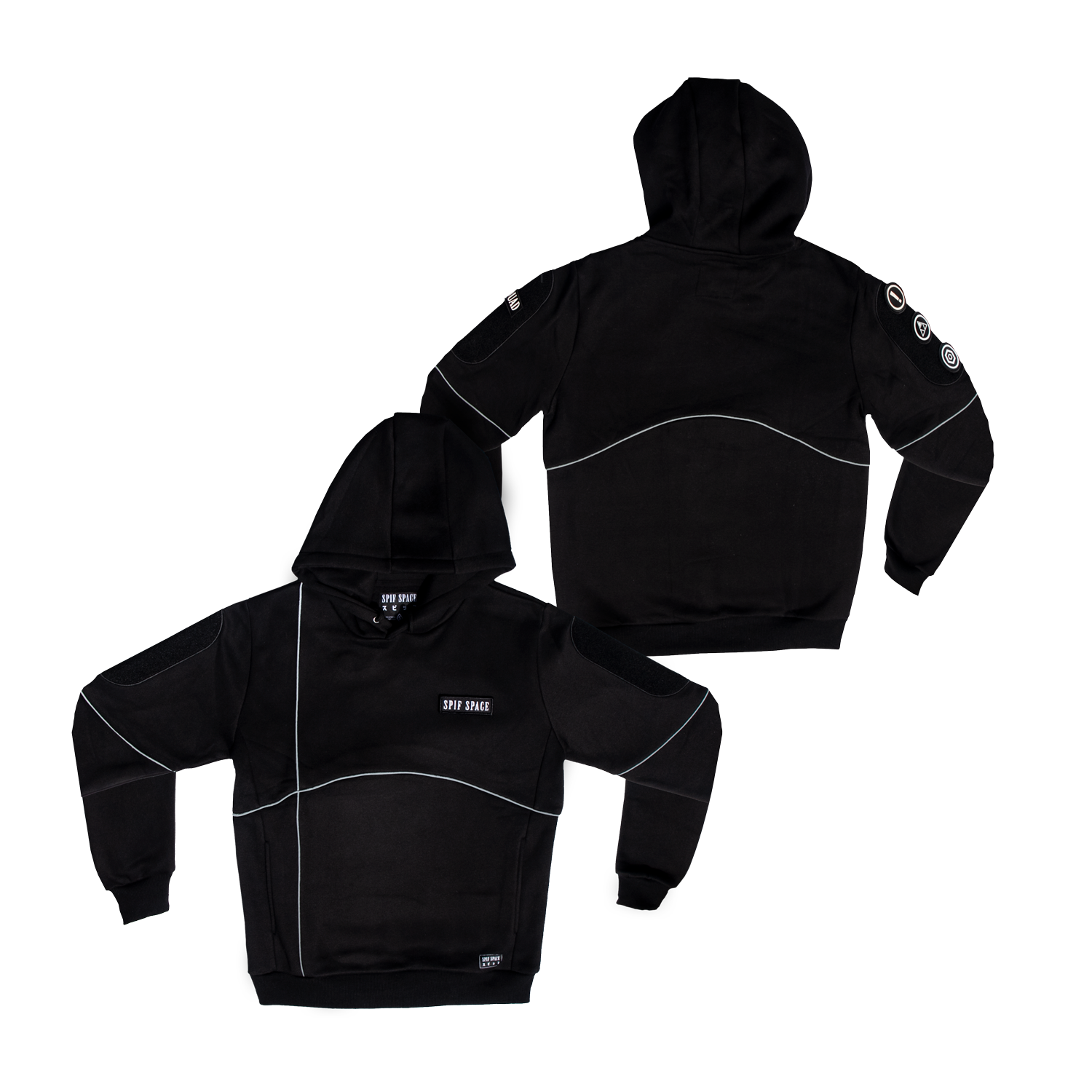 Our best-selling custom hoodie, re-imagined. Each hoodie comes with loop panels on the arms and left chest, for easy customization. SPIF SPACE patch and Japanese “SPIF” patch included.
